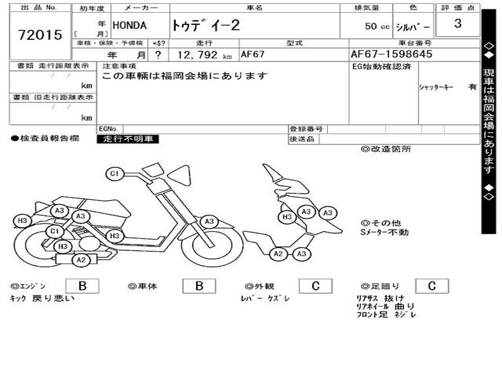 | Номер рамы / VIN | AF67-1598645 |