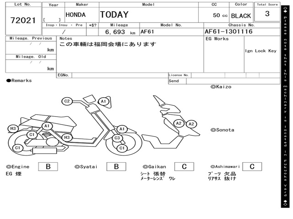 | Номер рамы / VIN | AF61-1301116 |