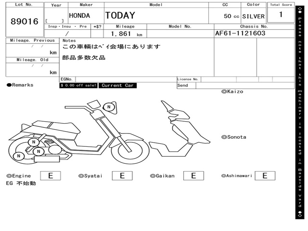 | Номер рамы / VIN | AF61-1121603 |