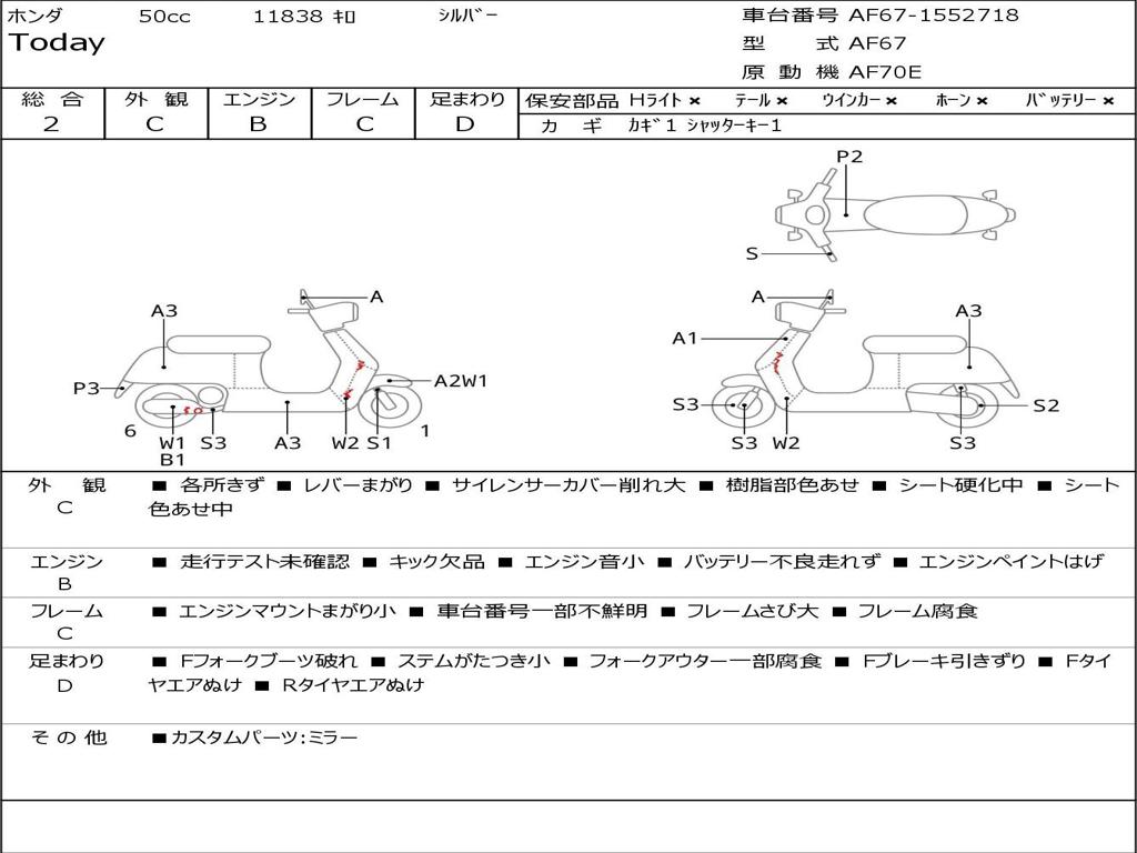 | Номер рамы / VIN | AF67-1552718 |