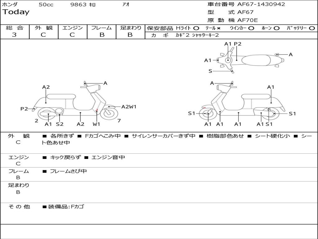 | Номер рамы / VIN | AF67-1430942 |