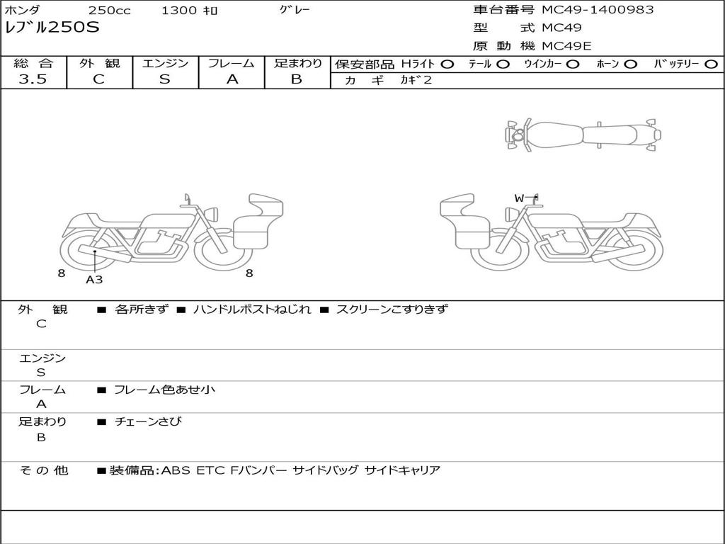 | Номер рамы / VIN | MC49-1400983 |
