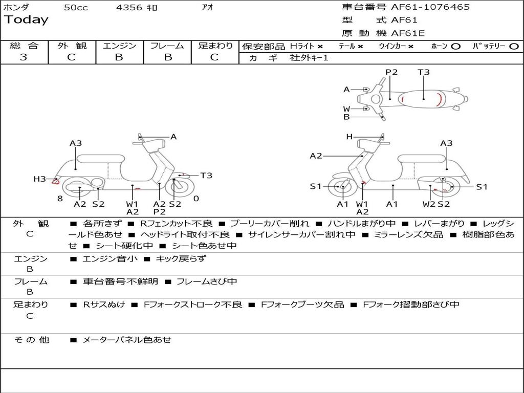 | Номер рамы / VIN | AF61-1076465 |