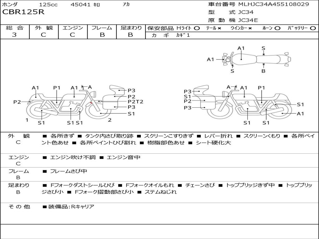 | Номер рамы / VIN | MLHJC34A455108029 |