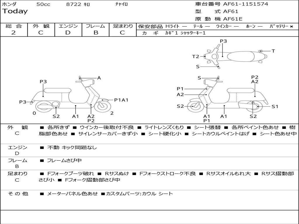 | Номер рамы / VIN | AF61-1151574 |