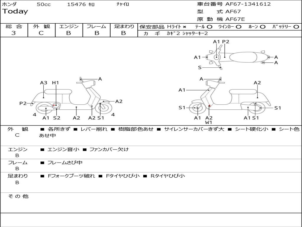 | Номер рамы / VIN | AF67-1341612 |