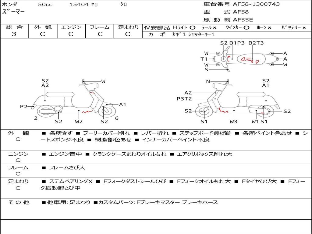 | Номер рамы / VIN | AF58-1300743 |