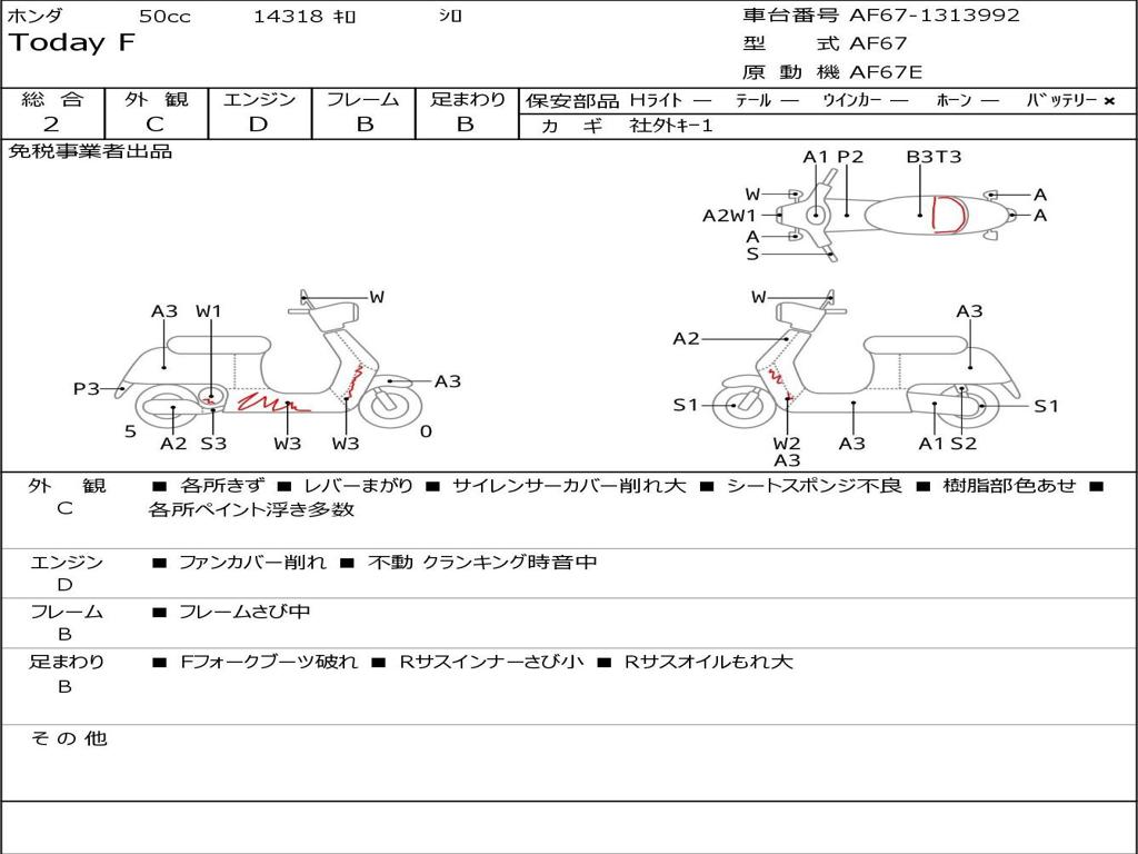 | Номер рамы / VIN | AF67-1313992 |
