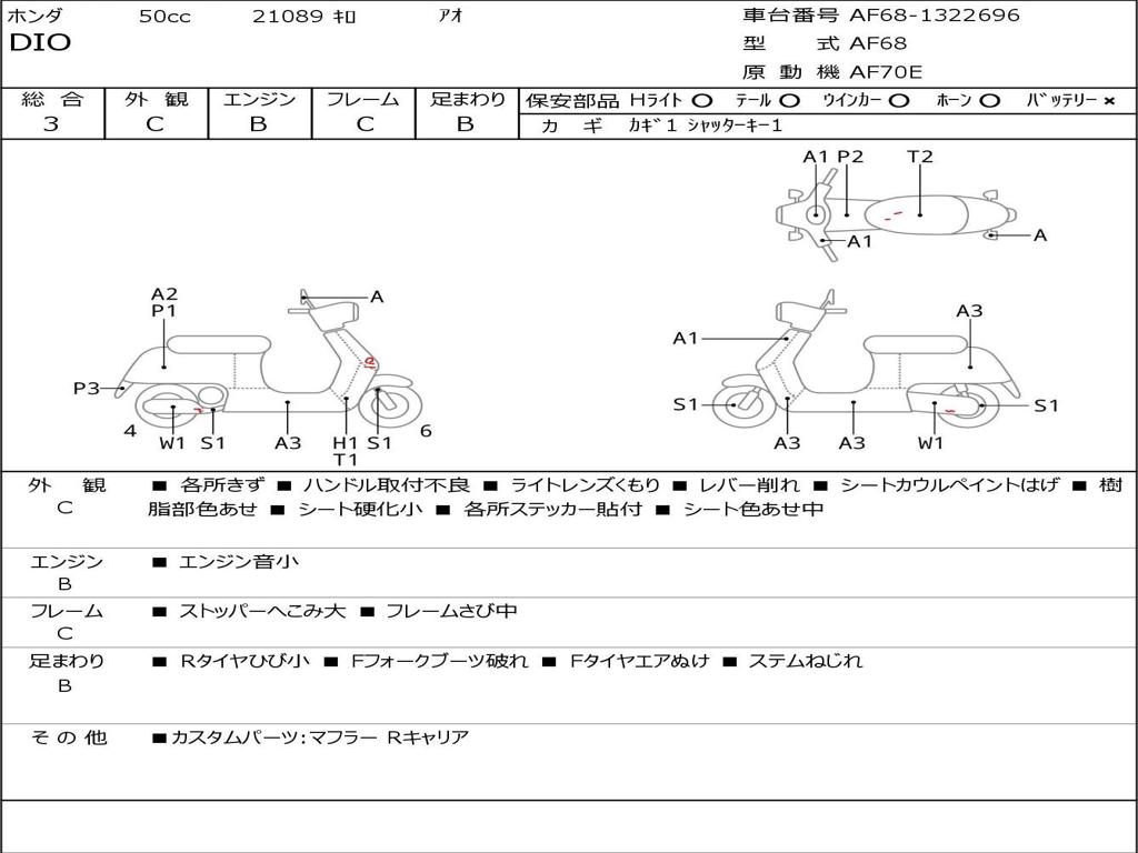 | Номер рамы / VIN | AF68-1322696 |