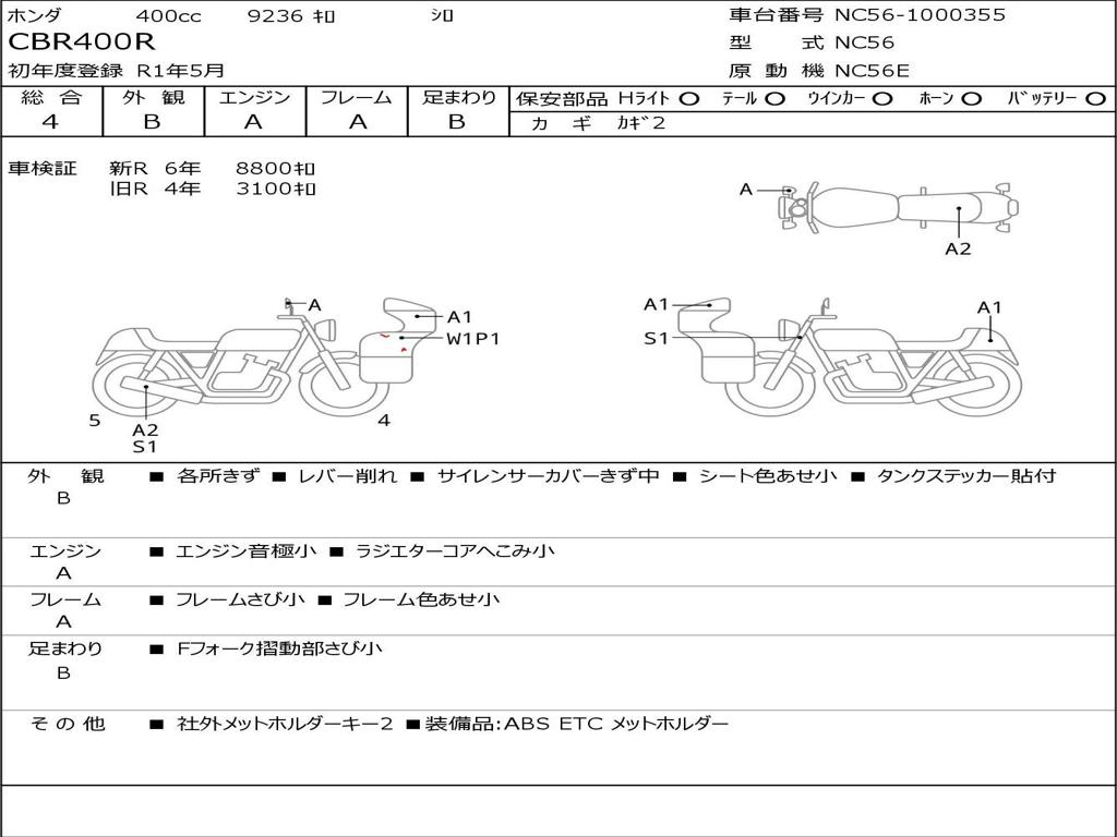 | Номер рамы / VIN | NC56-1000355 |