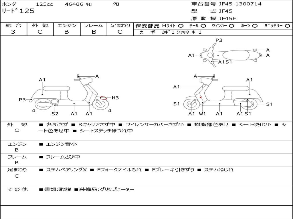 | Номер рамы / VIN | JF45-1300714 |
