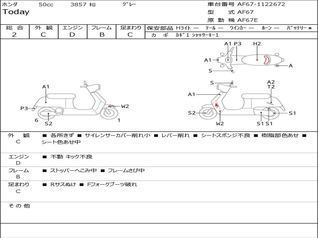 | Номер рамы / VIN | AF67-1122672 |