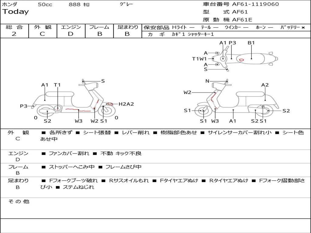 | Номер рамы / VIN | AF61-1119060 |