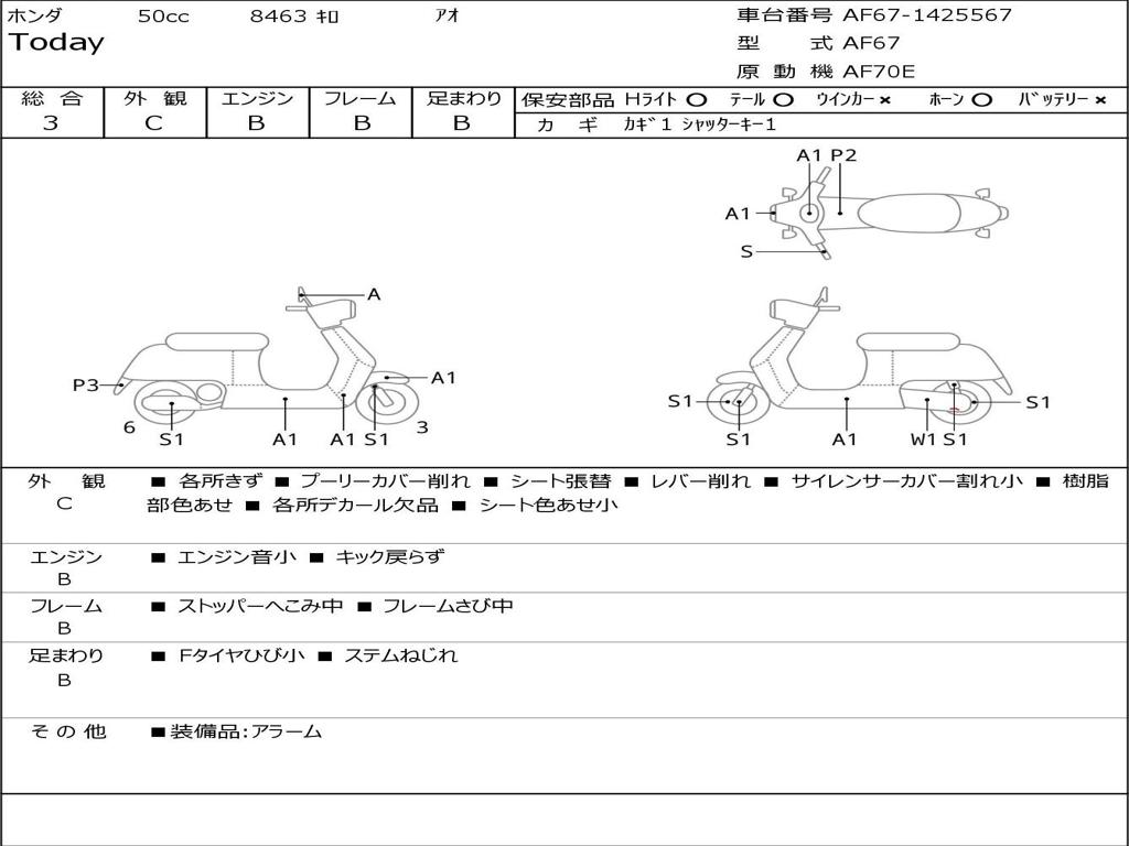 | Номер рамы / VIN | AF67-1425567 |