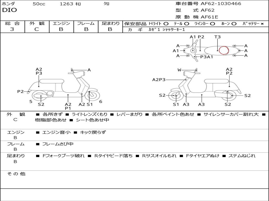 | Номер рамы / VIN | AF62-1030466 |