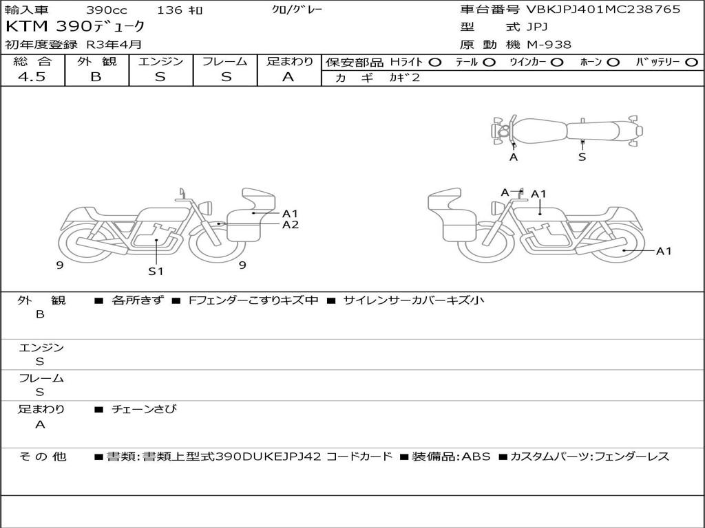 | Номер рамы / VIN | VBKJPJ401MC238765 |
