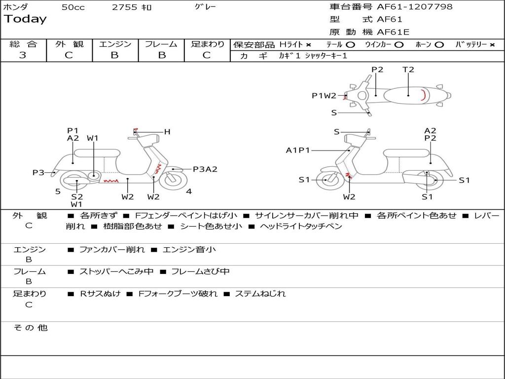 | Номер рамы / VIN | AF61-1207798 |