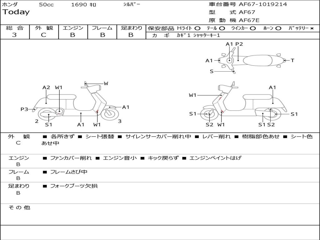 | Номер рамы / VIN | AF67-1019214 |