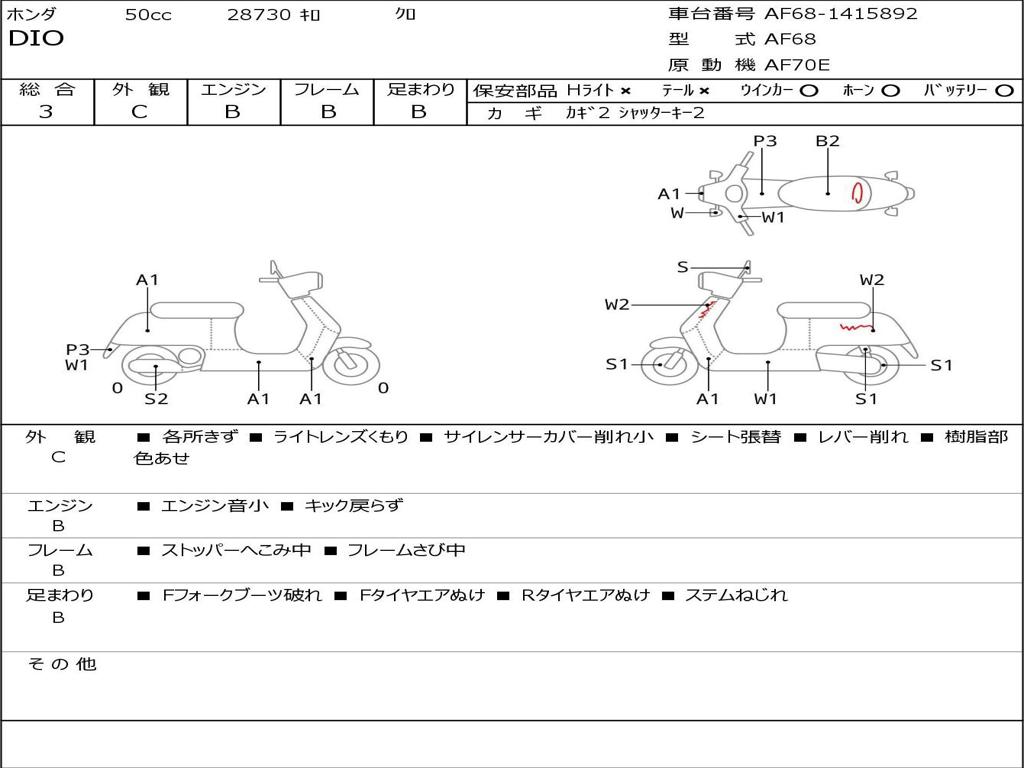 | Номер рамы / VIN | AF68-1415892 |