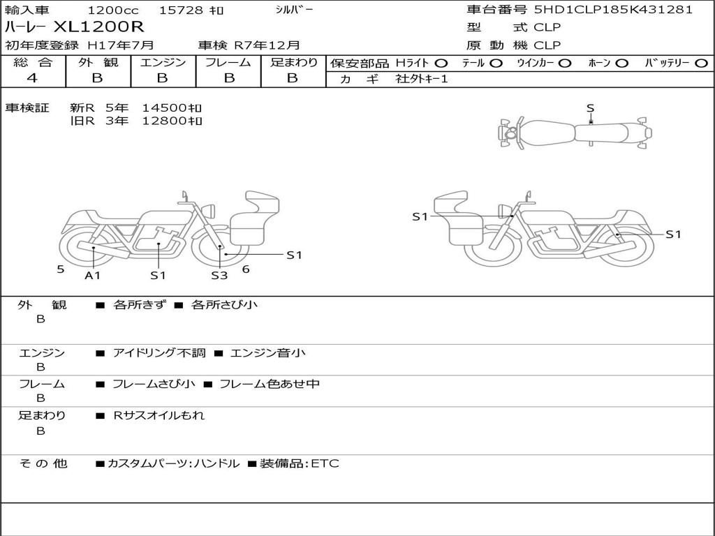 | Номер рамы / VIN | 5HD1CLP185K431281 |