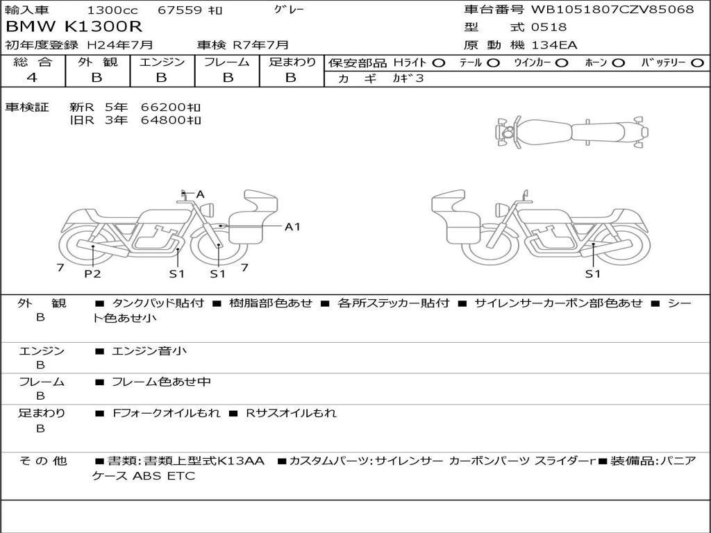 | Номер рамы / VIN | WB1051807CZV85068 |