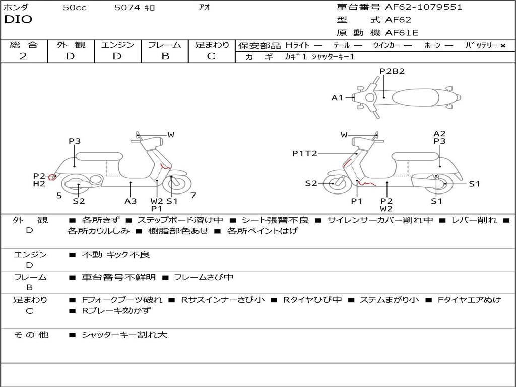 | Номер рамы / VIN | AF62-1079551 |
