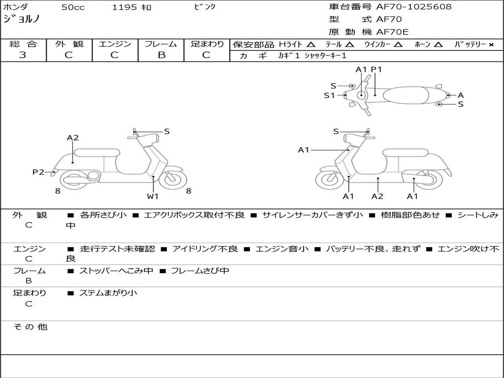 | Номер рамы / VIN | AF70-1025608 |