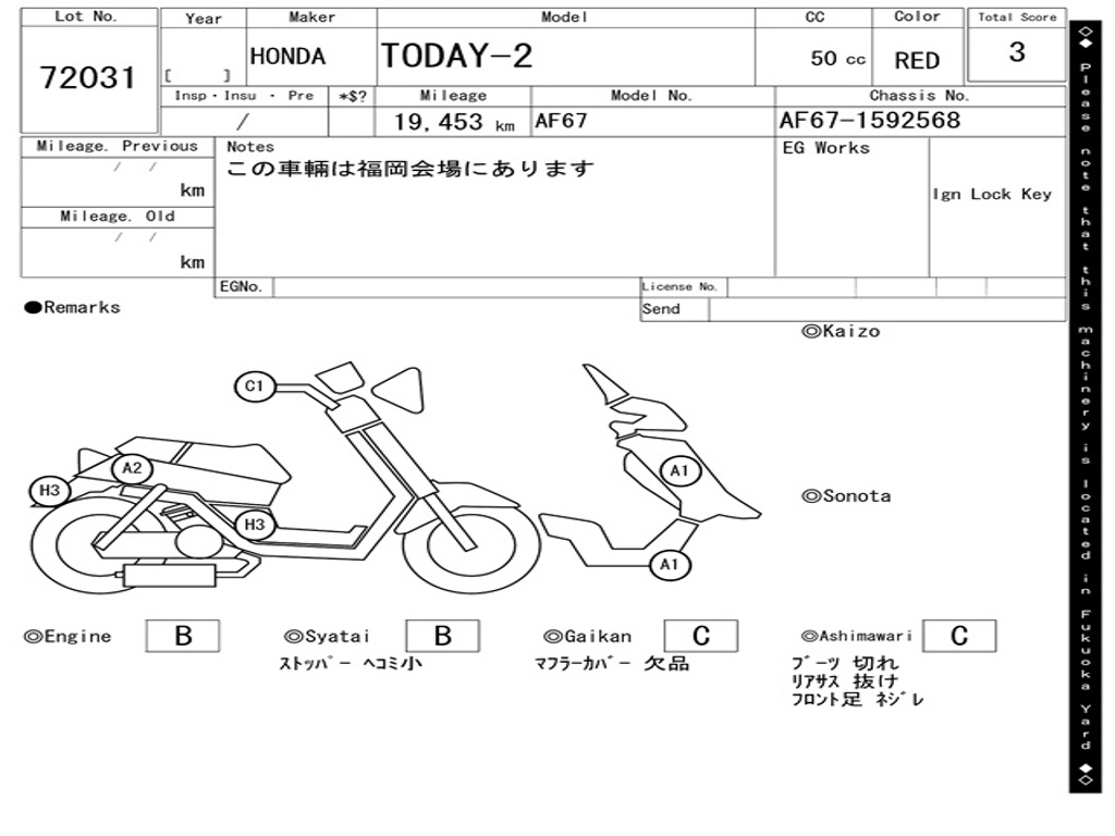 | Номер рамы / VIN | AF67-1592568 |