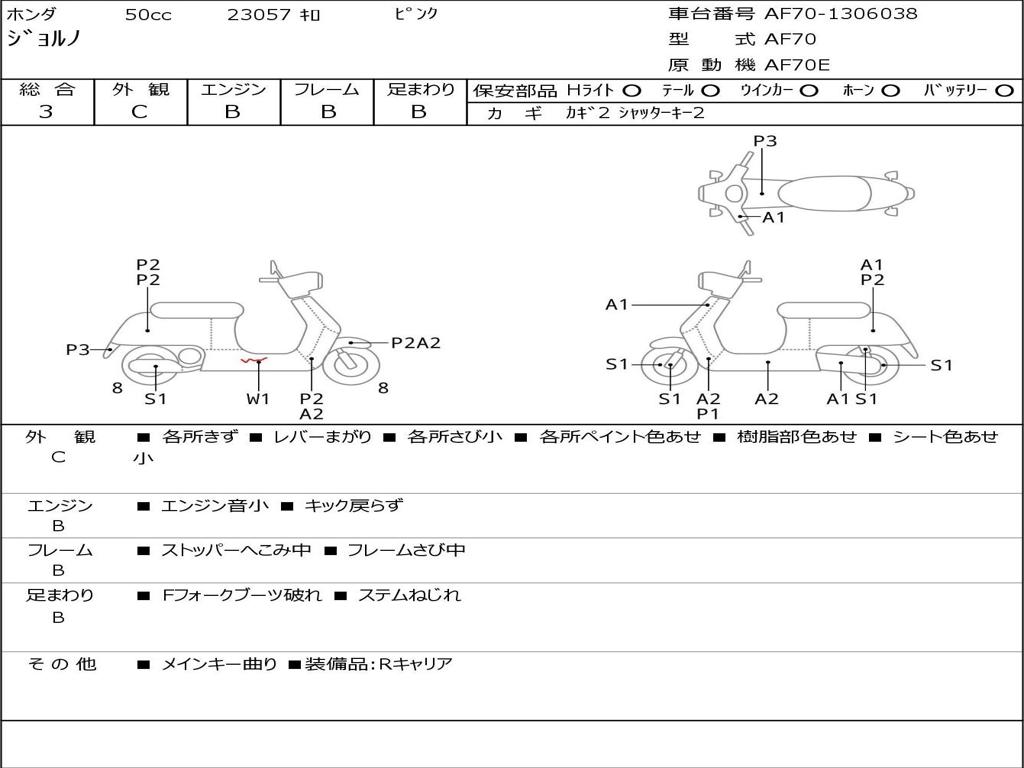 | Номер рамы / VIN | AF70-1306038 |