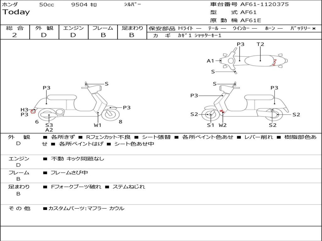 | Номер рамы / VIN | AF61-1120375 |