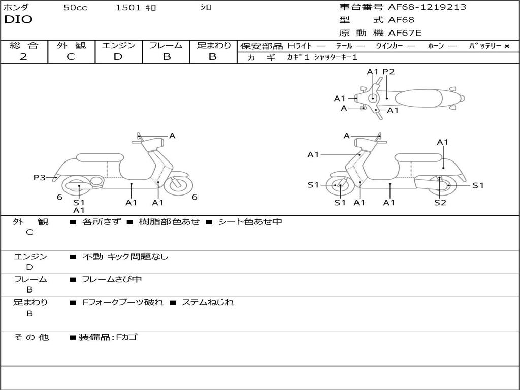 | Номер рамы / VIN | AF68-1219213 |