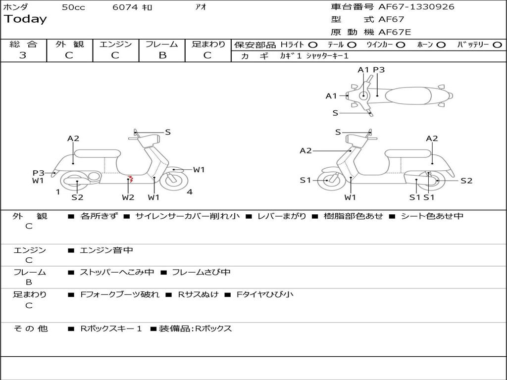 | Номер рамы / VIN | AF67-1330926 |