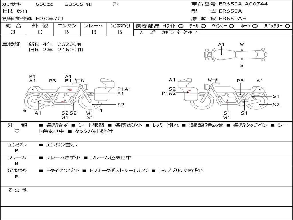 | Номер рамы / VIN | ER650A-A00744 |
