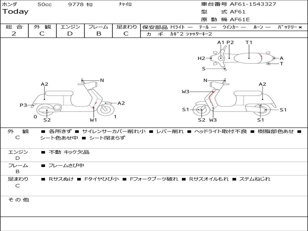 | Номер рамы / VIN | AF61-1543327 |