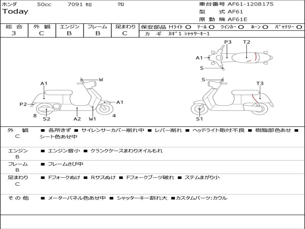 | Номер рамы / VIN | AF61-1208175 |