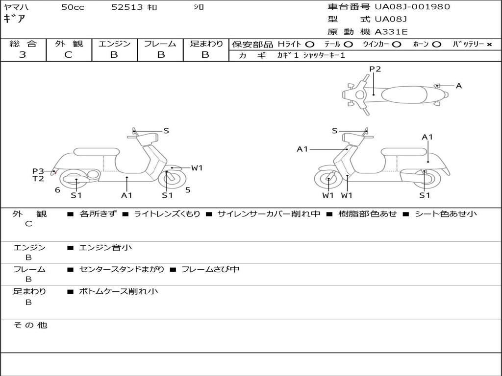 | Номер рамы / VIN | UA08J-001980 |