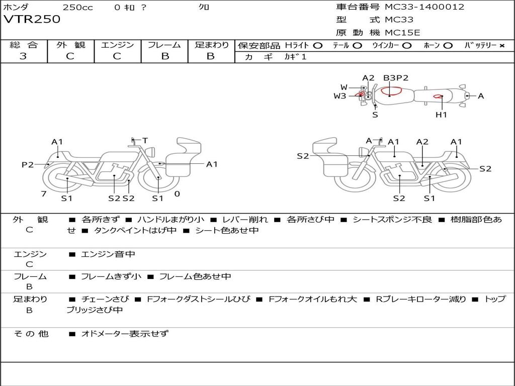 | Номер рамы / VIN | MC33-1400012 |