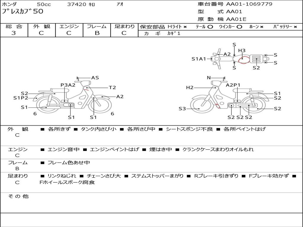 | Номер рамы / VIN | AA01-1069779 |