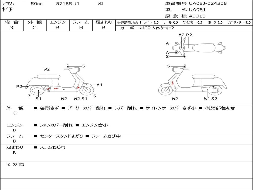 | Номер рамы / VIN | UA08J-024308 |