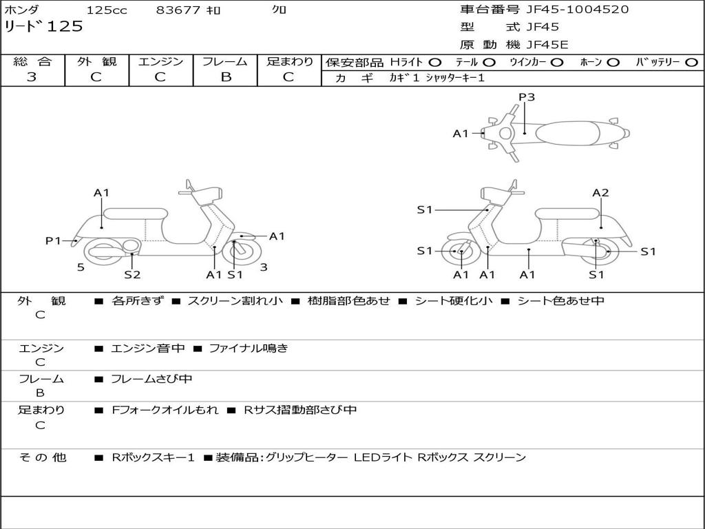 | Номер рамы / VIN | JF45-1004520 |