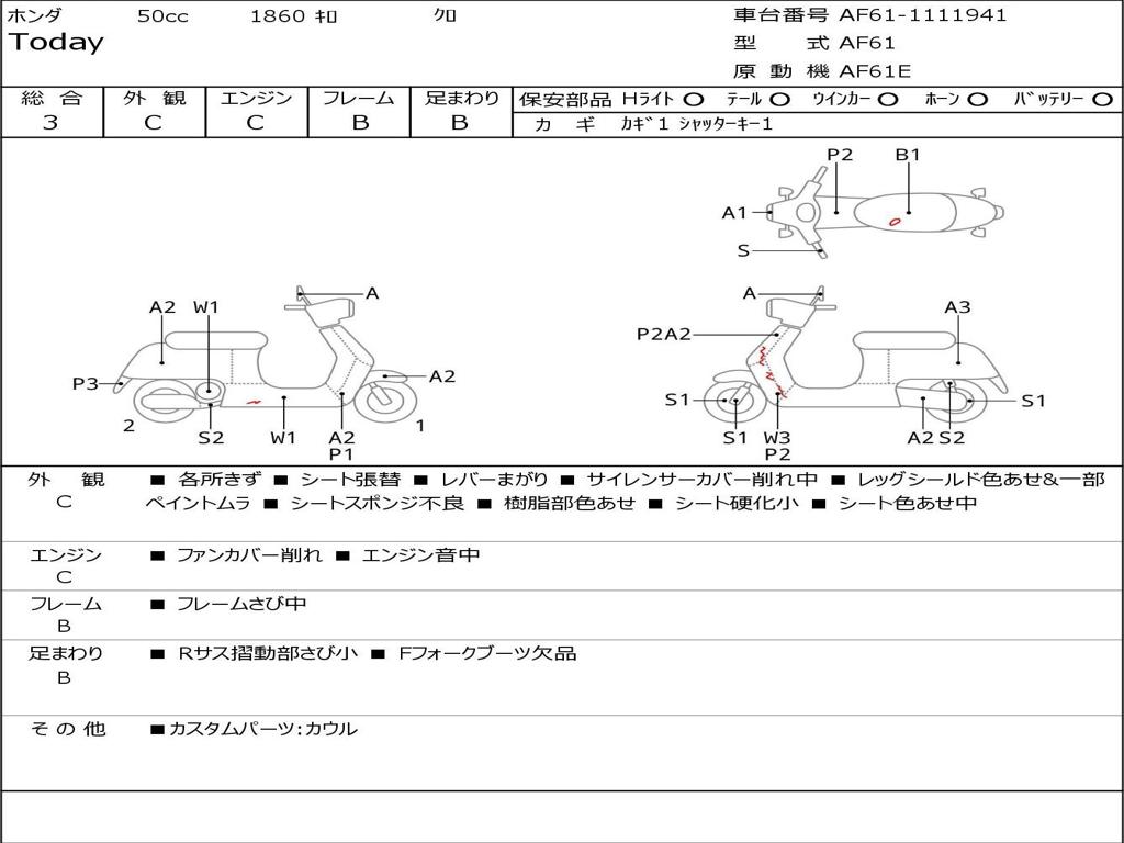 | Номер рамы / VIN | AF61-1111941 |