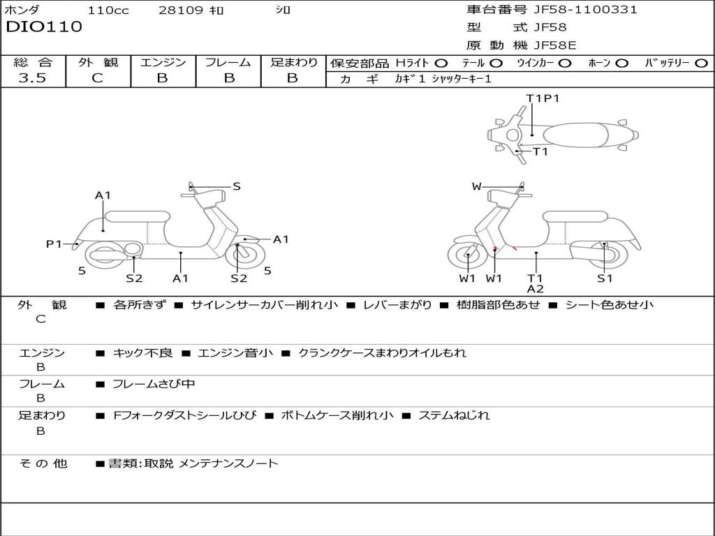 | Номер рамы / VIN | JF58-1100331 |