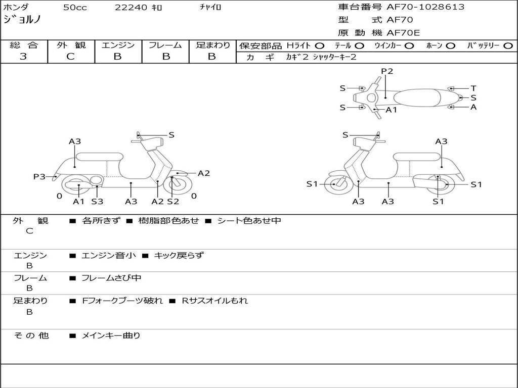 | Номер рамы / VIN | AF70-1028613 |