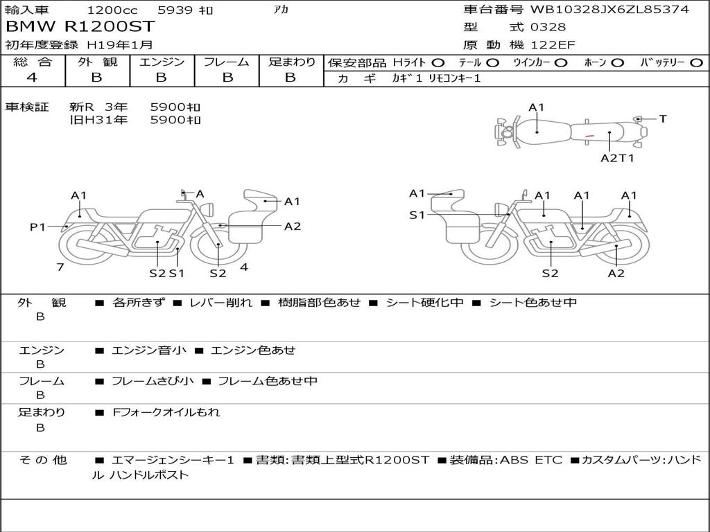 | Номер рамы / VIN | WB10328JX6ZL85374 |