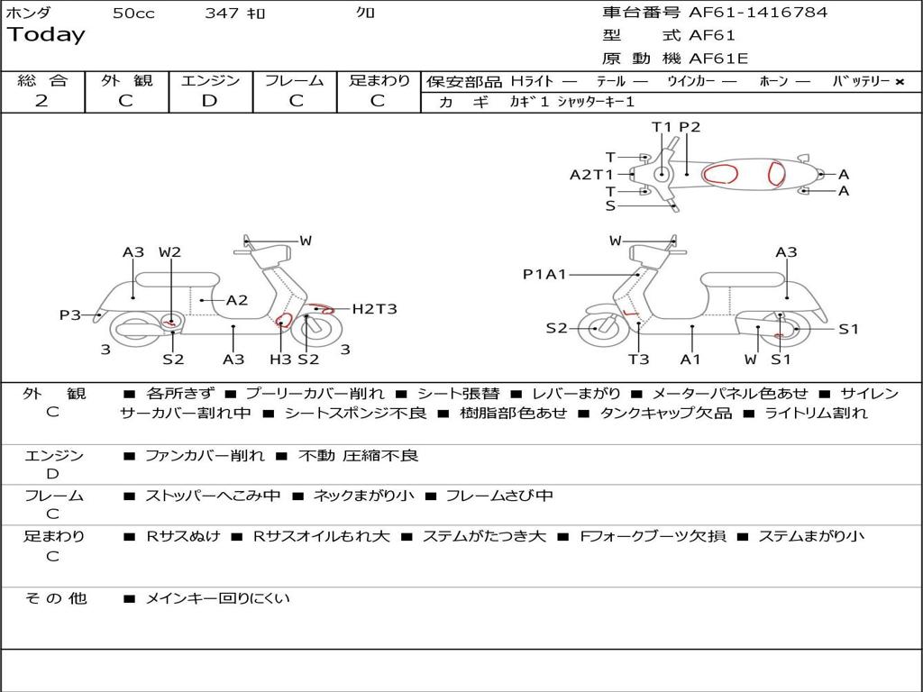 | Номер рамы / VIN | AF61-1416784 |