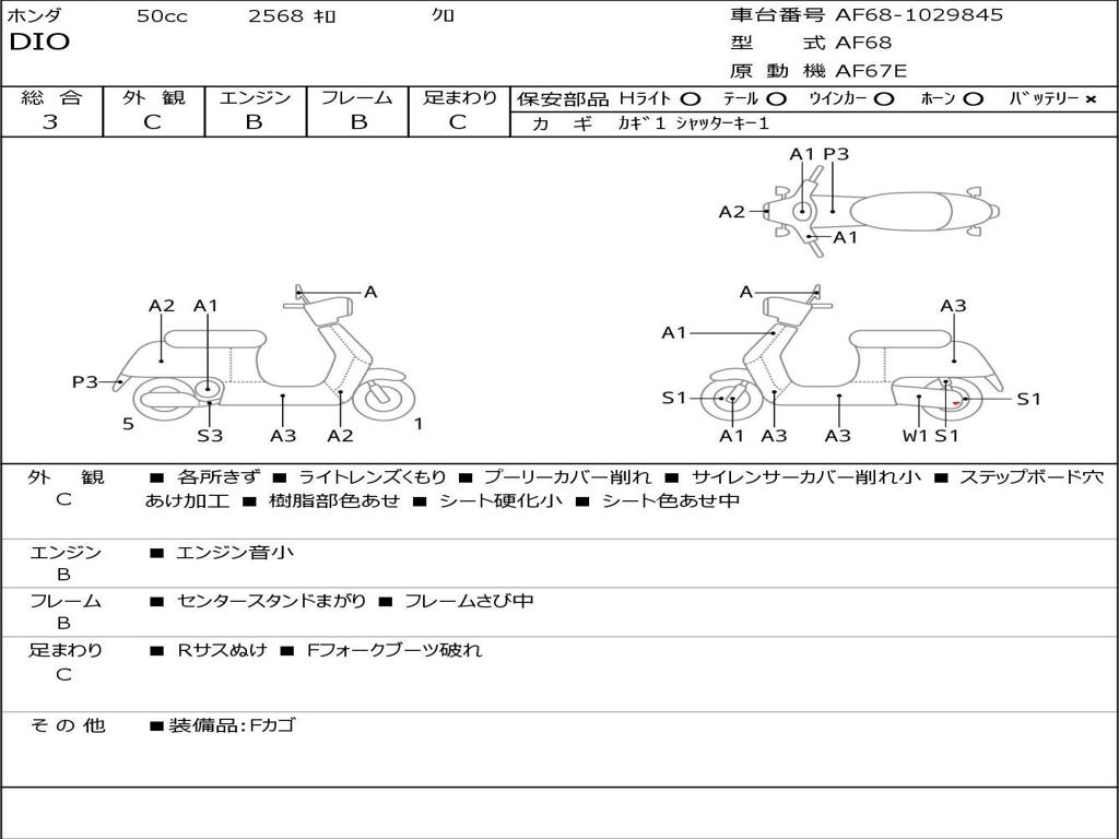 | Номер рамы / VIN | AF68-1029845 |