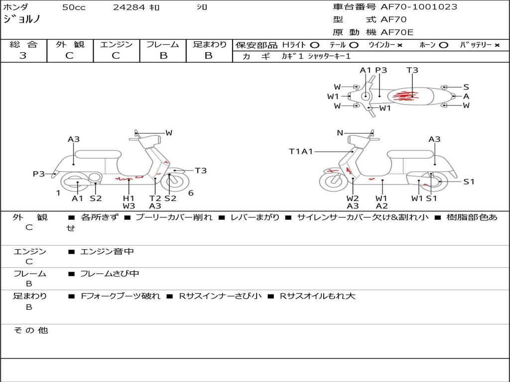 | Номер рамы / VIN | AF70-1001023 |