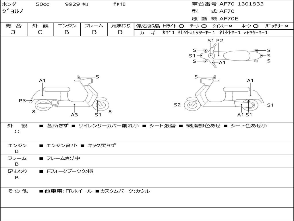 | Номер рамы / VIN | AF70-1301833 |