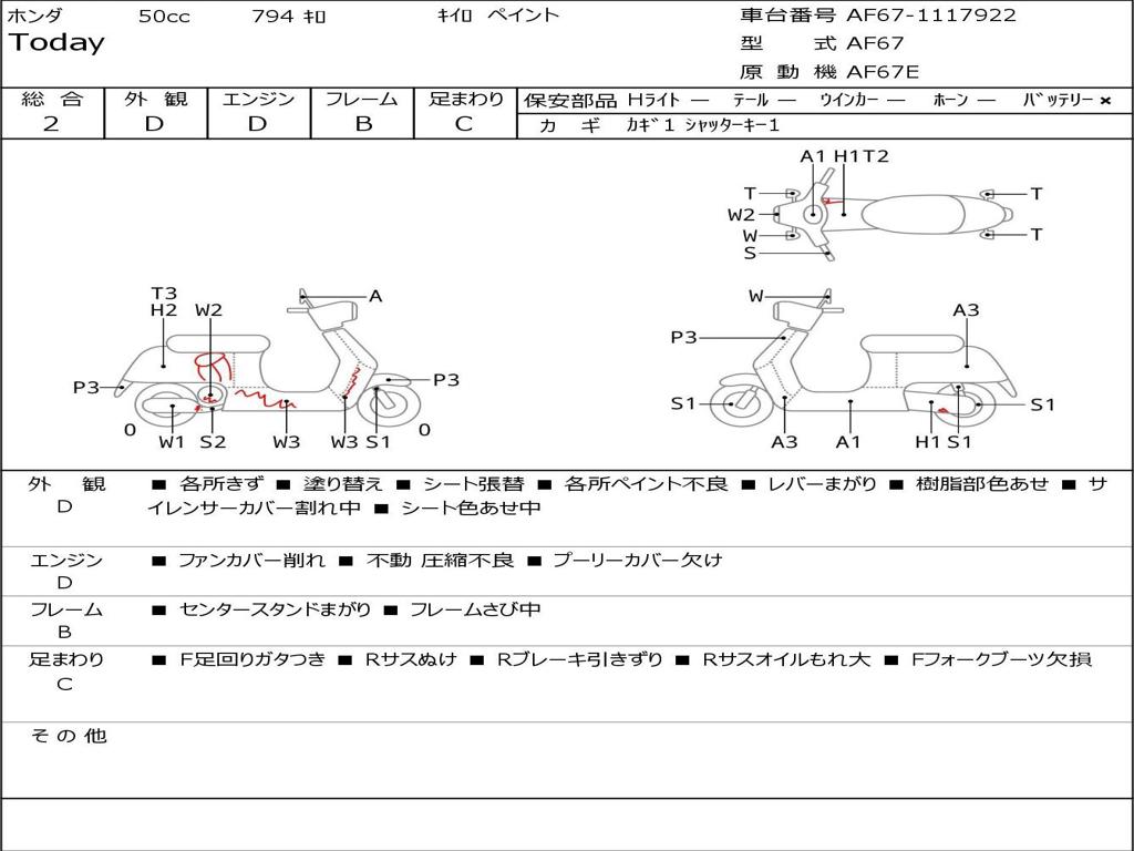 | Номер рамы / VIN | AF67-1117922 |
