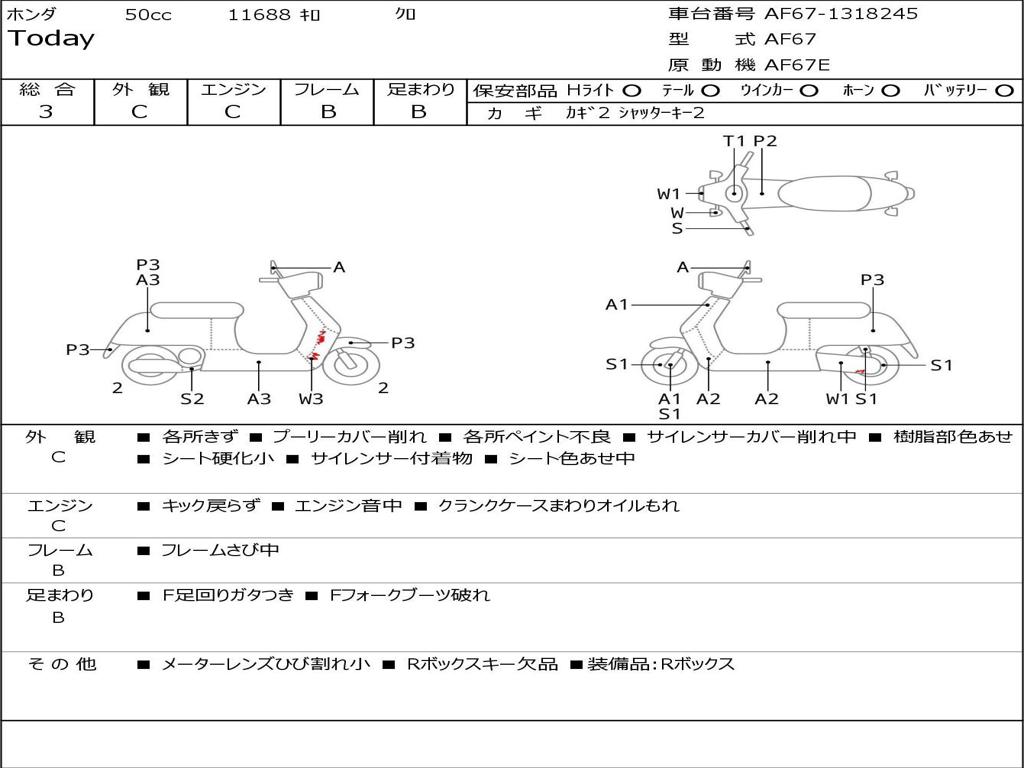 | Номер рамы / VIN | AF67-1318245 |